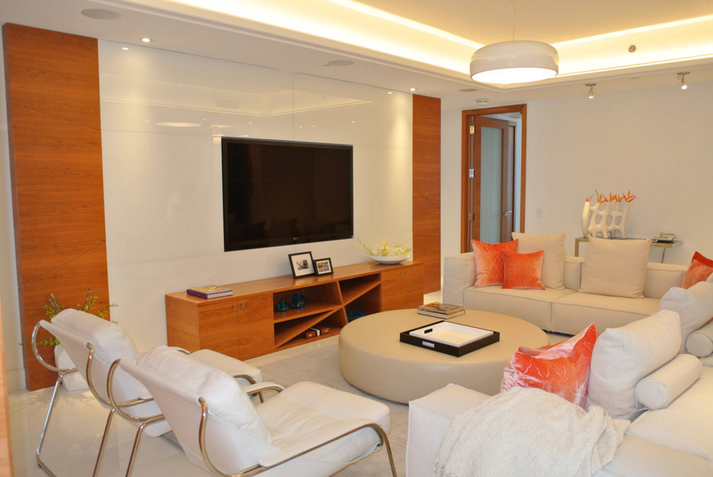 Если говорить о выборе цветовой палитры для оформления частных апартаментов, то очевидно, что в просторных помещениях он существенно шире. Светлое пространство способно принять довольно яркие акценты. Это могут быть как отдельные предметы интерьера – обивка мебели или фасады систем хранения, так и целые поверхности, оформленные в качестве акцентных, притягивающих все внимание на себя.