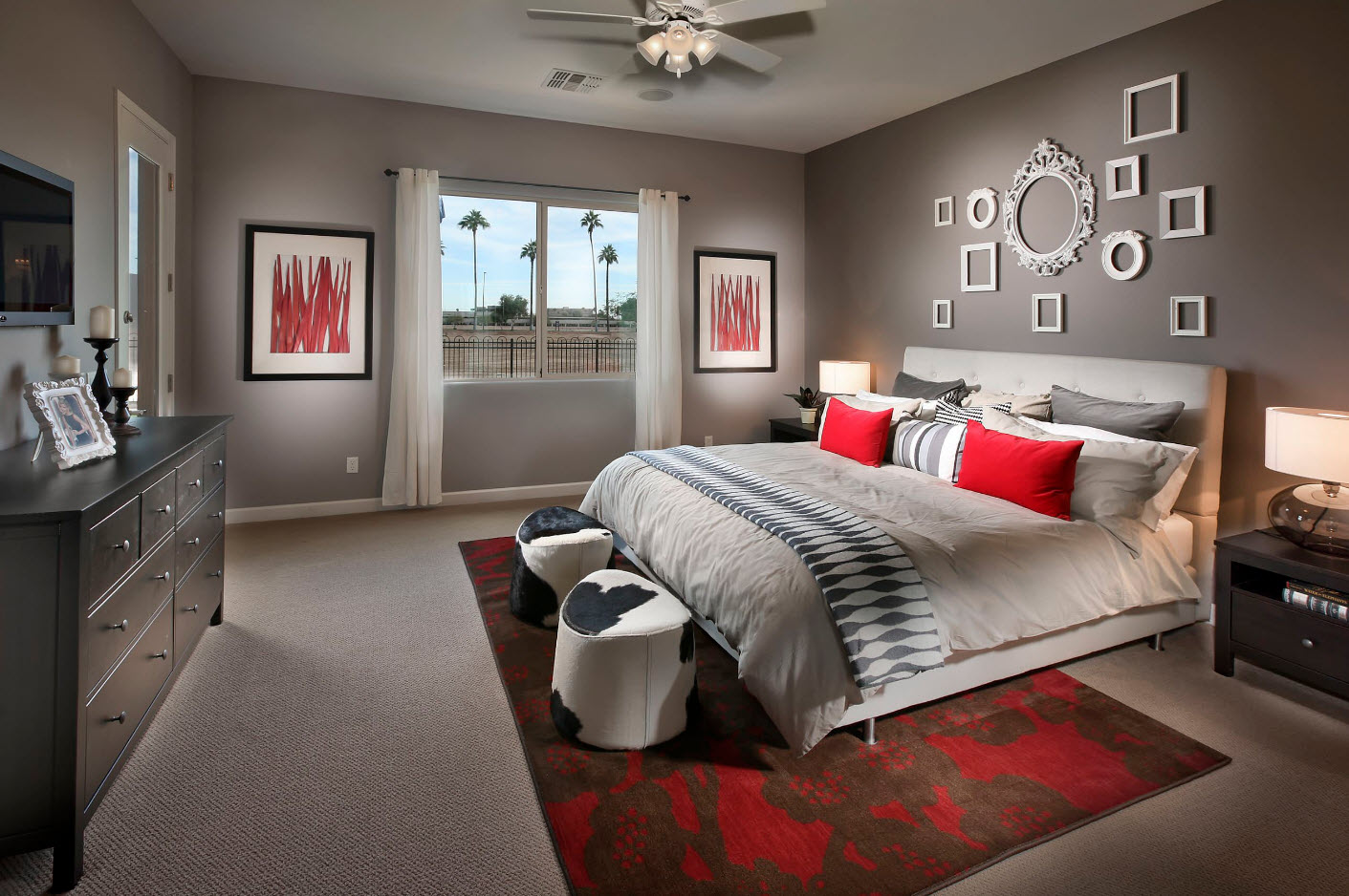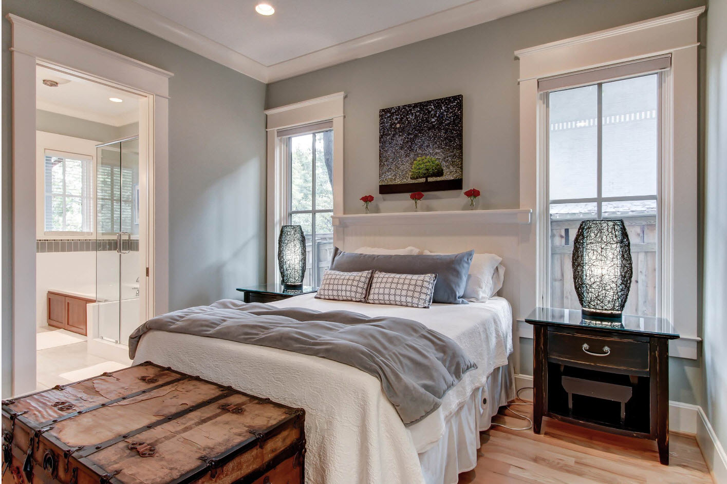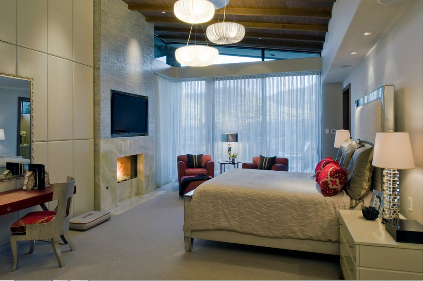 Спальня частного домовладения – приватное помещение, оформленное исключительно по мотивам личных предпочтений хозяев. Неспроста современная стилистика пропагандирует разумный минимализм, совмещенный с максимальным личностным комфортом. Если вам удобнее иметь в пространстве спальни только необходимые предметы интерьера – кровать, шкаф для гардероба и прикроватный столик или тумбу, то так и необходимо организовать обстановку комнаты. Если спальня не кажется полноценной без туалетного столика, рабочего места или уютного уголка для чтения, а пространство позволяет организовывать дополнительные функциональные сегменты, то и эти зоны можно успешно интегрировать в имеющийся интерьер.