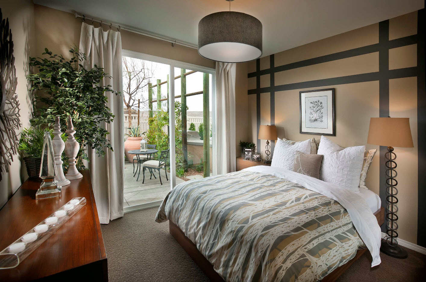 Пожалуй, спальня – самое популярное помещение для использования бежевой палитры. Теплота и спокойствие, умиротворение и комфорт, которые дарят бежевые оттенки как нельзя лучше подходит для помещения, в котором принято отдыхать после трудового дня и набираться сил перед новыми свершениями. Бежевую палитру отделки можно эффектно разбавить белоснежным исполнением мебели. Или создать определенный акцент при помощи темного цветового решения для кровати, и систем хранения.