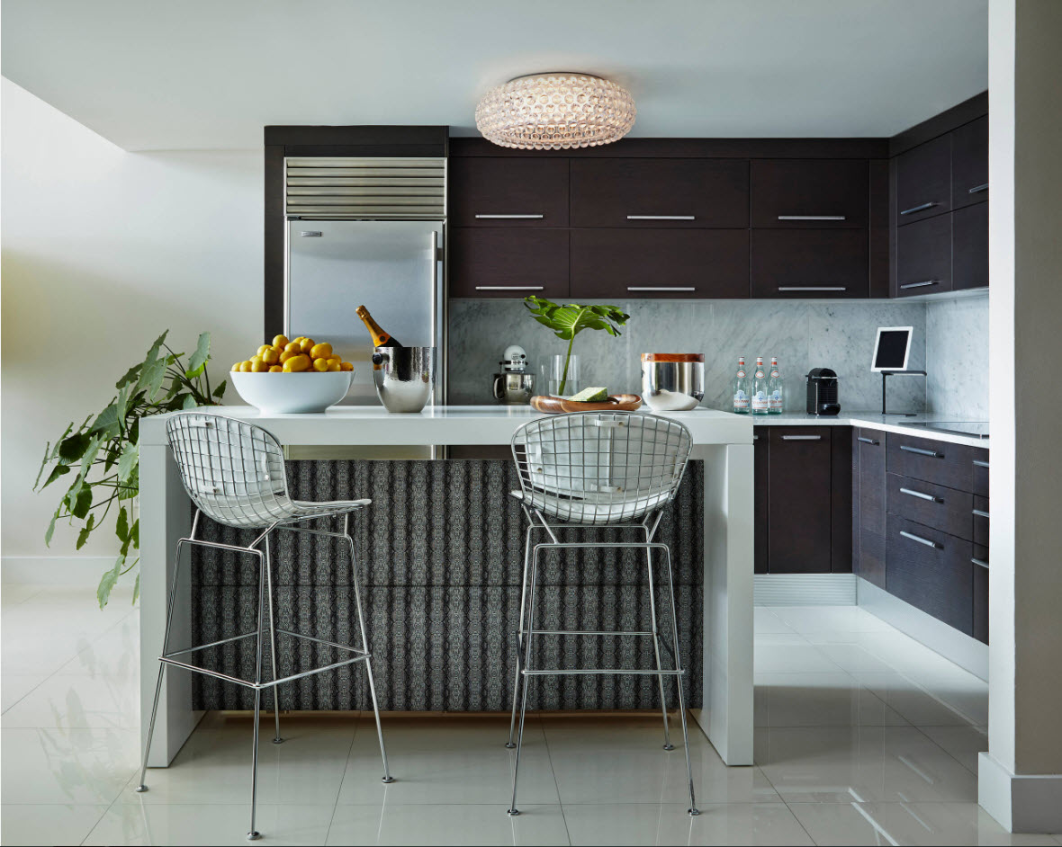 - точечная систем освещения и линейная подсветка, равномерно распределенные по функциональным сегментам, помогает не только отлично осветить имеющееся пространство, но и зрительно его увеличить;