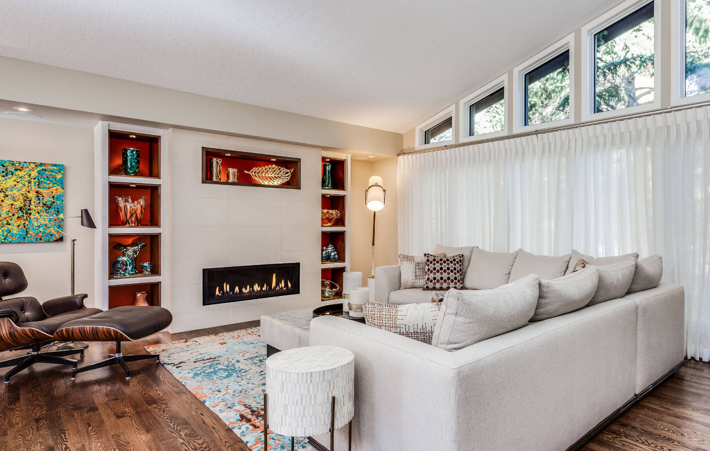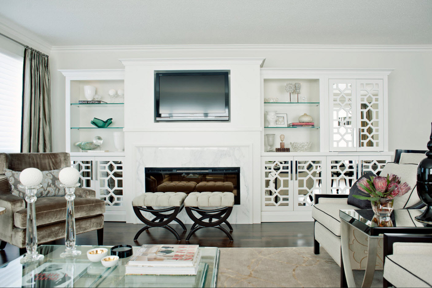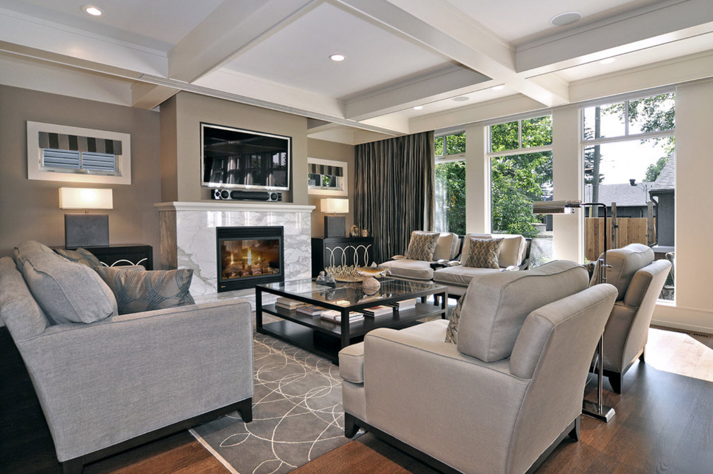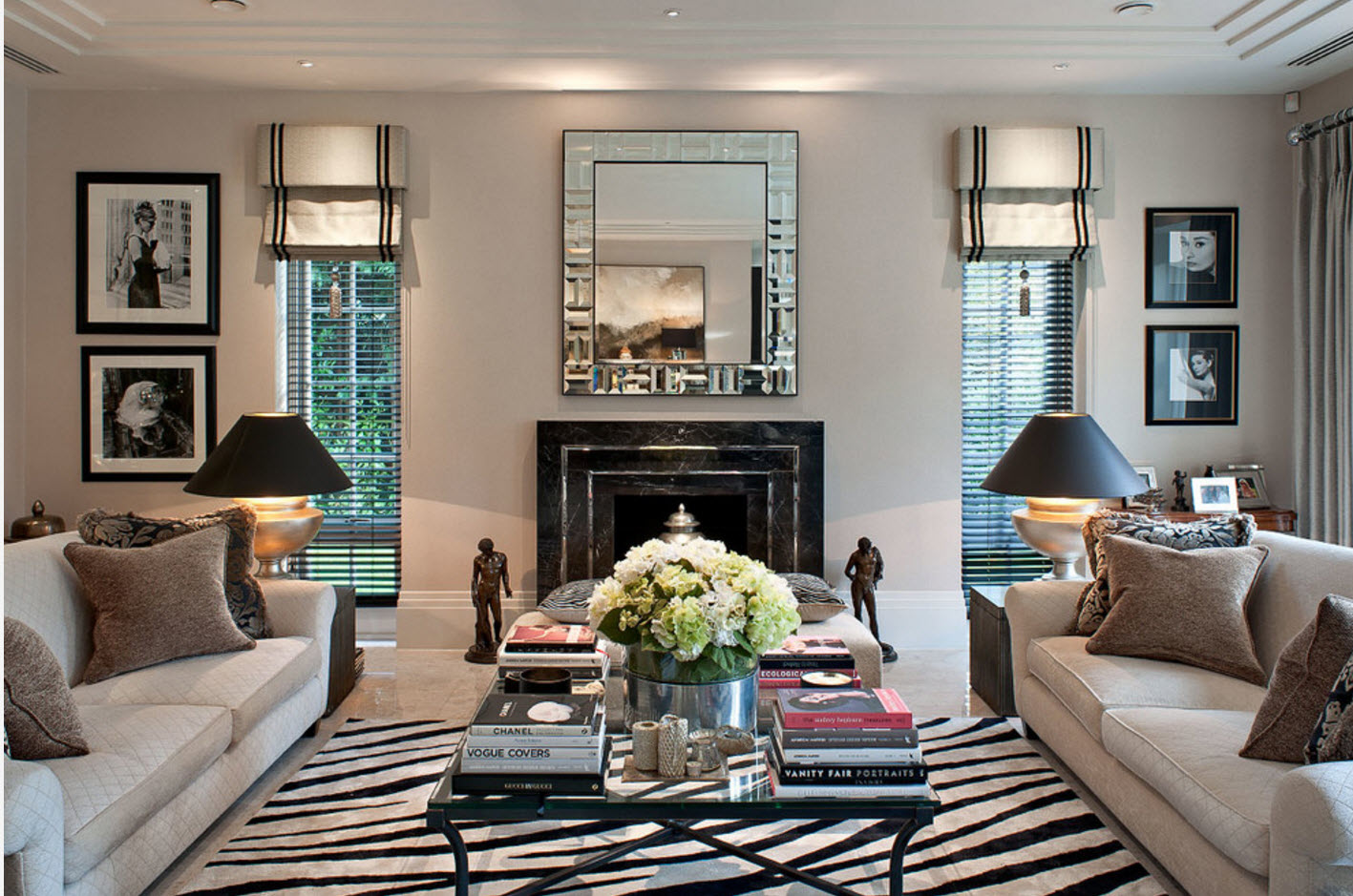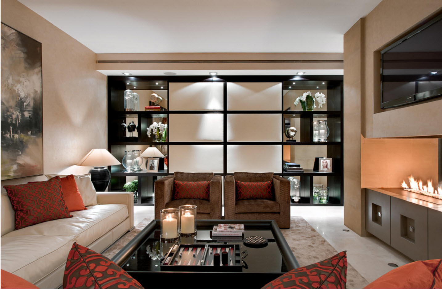 Гостиную в частном доме сложно себе представить без камина. В собственном жилище всегда есть возможность установки не просто электрического аналога очага, а действующего камины с дымоходом. Ничто так не способно создать поистине комфортабельную и уютную обстановку для расслабления в кругу семьи, как танец огня в красивом камине. Очаг в современной гостиной, следуя многолетним традициям становится координационным центром, вокруг которого встраивается вся обстановка комнаты. Часто именно очаг становится отправной точкой при создании симметричного, сбалансированного образа гостиной.