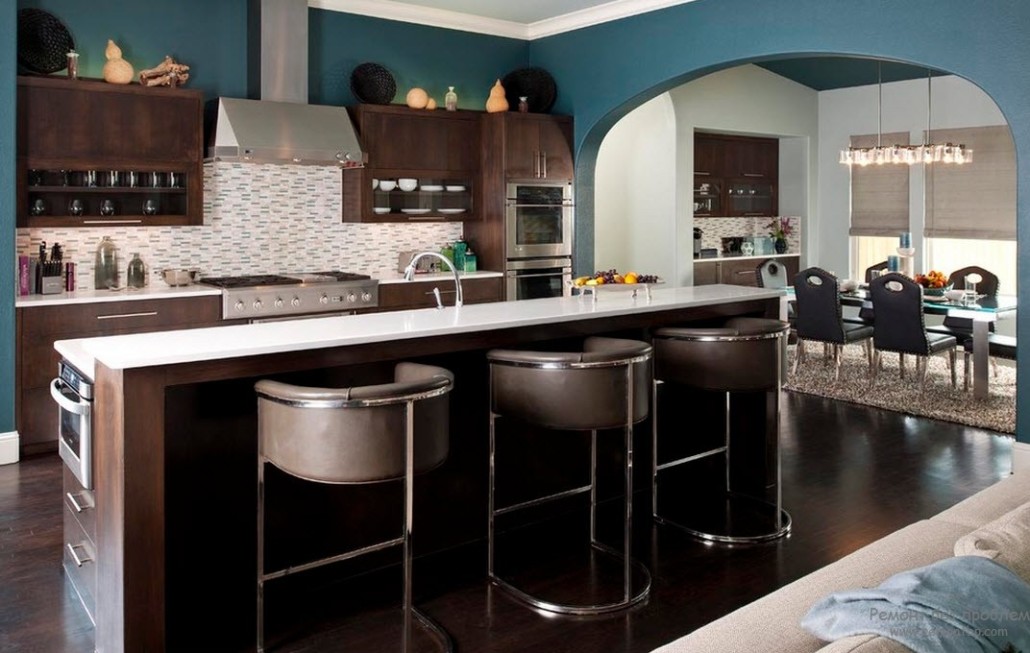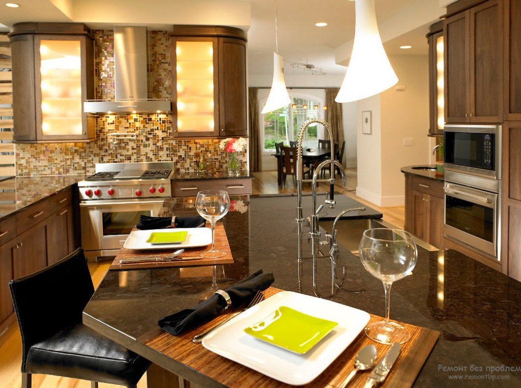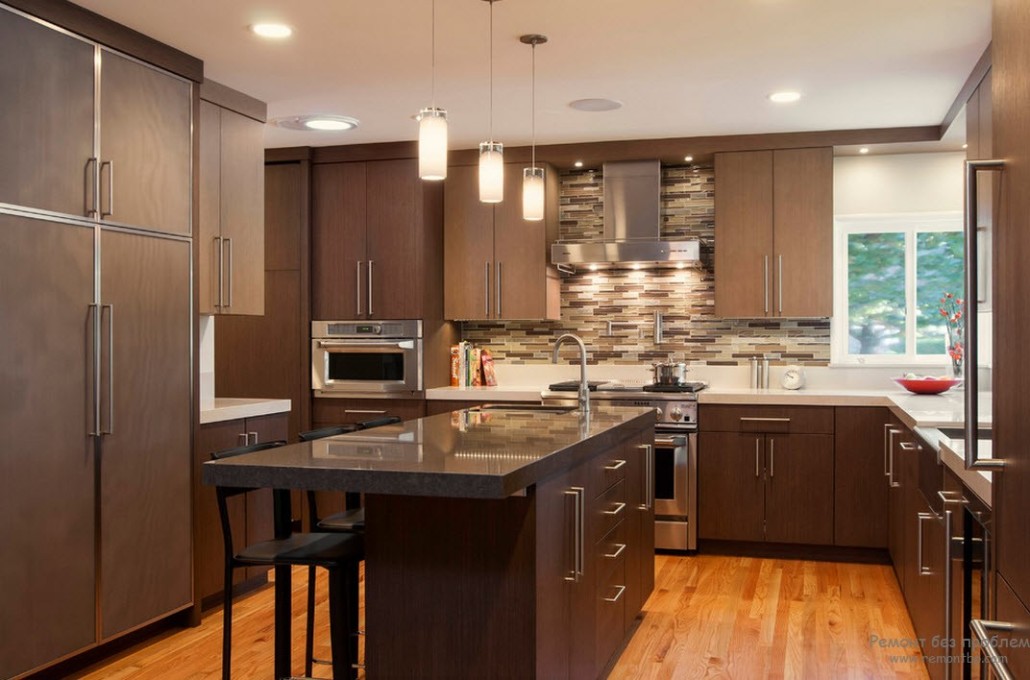 коричневый цвет во всем. А в кухни, он смотрится тепло и уютно. Если говорить