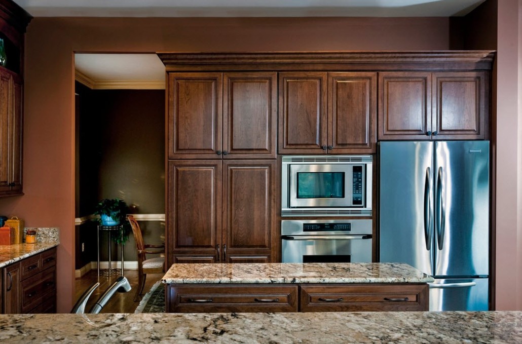 Кухня, оформленная в коричневых тонах, долгие десятилетия остается на пике популярности. И с этого пьедестала ее не могут сместить не новомодные яркие оттенки кухонных гарнитуров, ни классическое черно-белое оформление. И все дело в том, что именно цвет натурального дерева и шоколада создают в интерьере неповторимое спокойствие, комфорт, элегантность, уют и тепло семейного очага. Именно кухне в коричневом цвете отдают предпочтение огромное количество людей, затеявших ремонт в своей квартире. Широчайший спектр оттенков этого цвета, которые идеально сочетаются с остальными цветами, дает возможность воплотить в жизнь самые оригинальные и уникальные дизайнерские задумки.