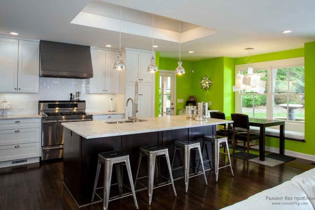 Интерьер кухни салатового цвета – весенняя свежесть в квартире