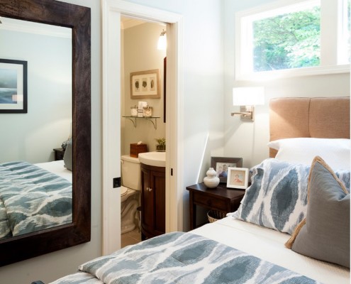 Спальня изначально предназначена для отдыха, поэтому эта комната должна быть отделена от остальной части квартиры. Лучшим вариантом будет установка раздвижных дверей, который поможет вам максимально сохранить драгоценное пространство. Но и обычные, распашные, двери при правильной планировке не будут вам большой помехой для расстановки мебели.