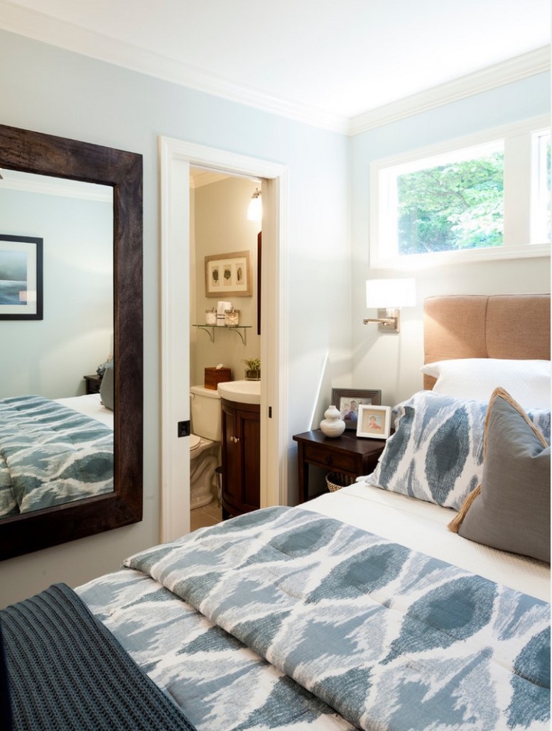 Дорогостоящей, но очень эффективной в вопросе визуального расширения комнаты, является зеркальная стена. Возможно, это и не самый подходящий прием для большинства людей. Потому что человек, способный позволить себе такую стену, вряд ли может «позволить» себе иметь такую маленькую спальню. Но все же, знать об этом варианте не помешает, потому что облицовка зеркалами небольшой поверхности не такое уж и затратное дело. Зато эффект поразительный.