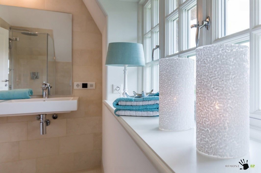 Внимание к деталям – основа интересного дизайна. Легкие вкрапления морского стиля в интерьер ванной комнаты, безусловно, на пользу спокойной и умиротворяющей обстановке утилитарного пространства. Светло-голубой оттенок текстиля и элементов осветительных приборов, ракушки и морские звезды в качестве декора – милый и оригинальный акцент в нейтральном дизайне.