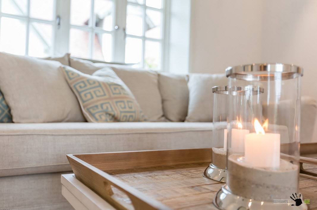 Небольшие дополнения, декоративные детали и мелочи, которые не сразу бросаются в глаза, тем не менее, влияют на создание общего впечатления о дизайне комнаты. Не просто столешница журнального столика, а с деревянными подносами, принт на текстиле диванных подушек или свечи в изящном оформлении – любая деталь работает на создание атмосферы помещения.