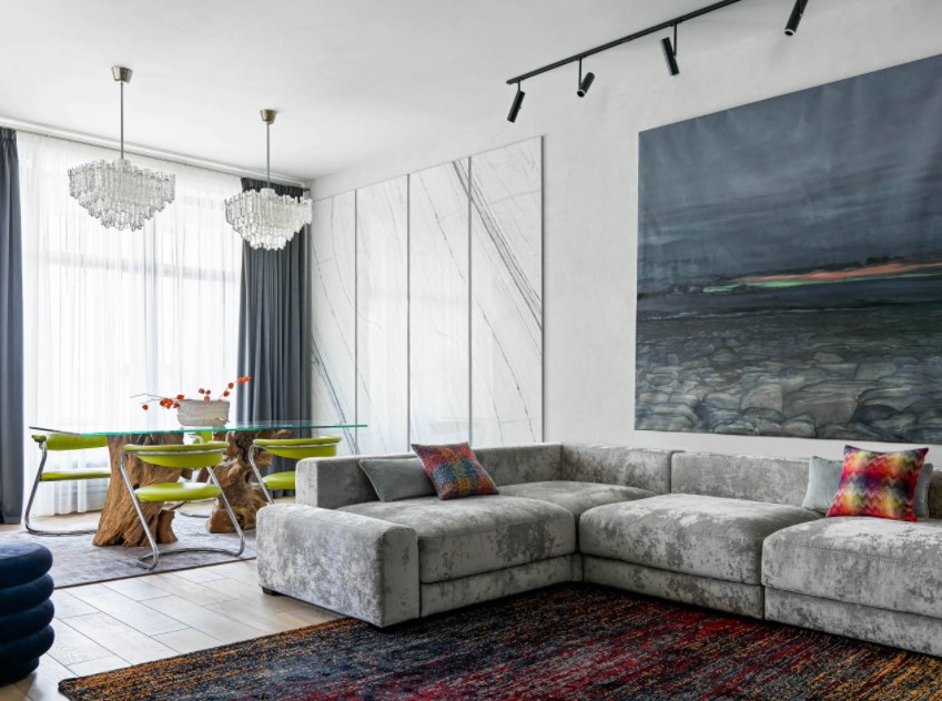 Несмотря на то, что аскетичный подход к оформлению квартир все еще в тренде, в оформлении появляются эпатажные детали, вроде художественных картин или скульптур. По всей видимости сказывается усталость от минимализма.