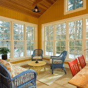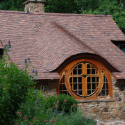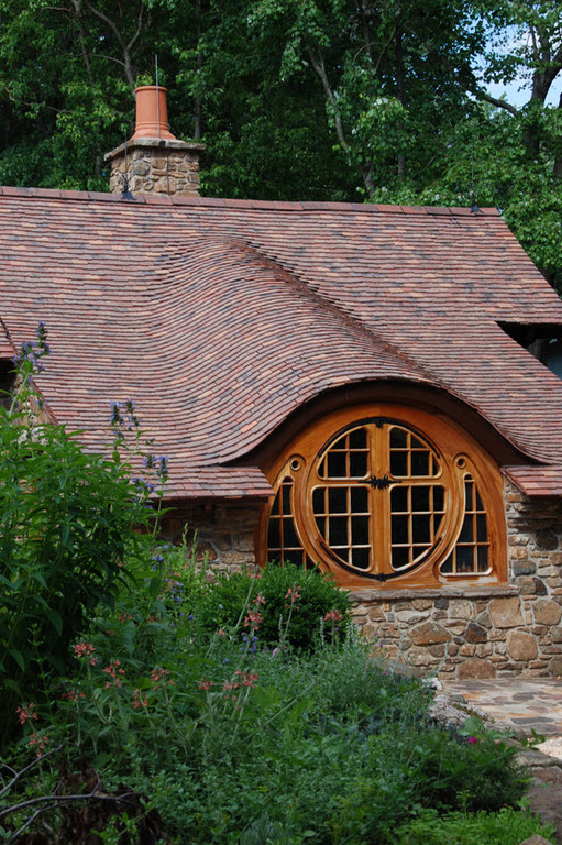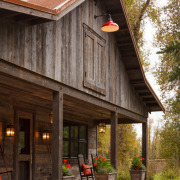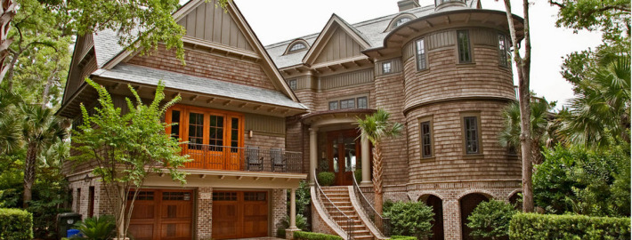 Русская вариация кантри предлагает характерный колорит. Купеческие роскошные хоромы, классическая русская изба или современный дизайн дачного деревянного дома одинаково выражают национальные традиции, обычаи и фольклор. Оформляя дом в подобном стиле, дизайнеры нередко возводят фронтоны в качестве декорации второго этажа, а деревянные окна украшают наружными створками.