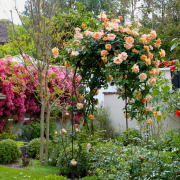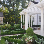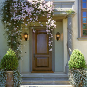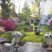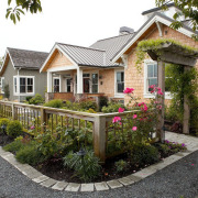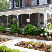 Бесподобным украшением экстерьера служат цветники. Раньше их огораживали штакетником, но сегодня множество оригинальных идей профессионалов делают цветочные ограждения намного интереснее и красивее: это и деревянные трельяжи с вьющимися розами, и живописные цветники в форме тележек, бочонков, и даже фигурные арки.