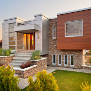 Каменная отделка фасада – удовольствие недешевое, особенно если речь идет о натуральном материале. Но престиж, красота, долговечность и прочность полностью оправдывают данный выбор. Как альтернатива, можно использовать искусственный камень. Его доступная цена и масса преимуществ порадуют многих обывателей. Так, например, цветовая палитра гораздо интереснее и разнообразнее, чем у природного камня. Он высокопрочен, морозоустойчив и достаточно легок, а потому будет крепко и надежно держаться. Широкий выбор формы, фактуры позволяет проявить здесь творческий потенциал архитектора и дизайнера.