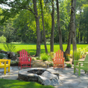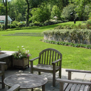 При обустройстве экстерьера загородного дома отдельное внимание следует уделить садовой мебели. Деревянные беседки, пару качель, стоящие друг напротив друга, дополнительно украсят общий вид. Очень актуальны здесь площадки для пикника с мангалом, а размещенные рядом деревянные столики с лавочками станут излюбленным местом отдыха всей семьи и лучших друзей.