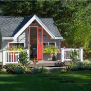 Безупречный колорит дому придадут деревянные ставни, наличники, просторная веранда или аккуратное крылечко.