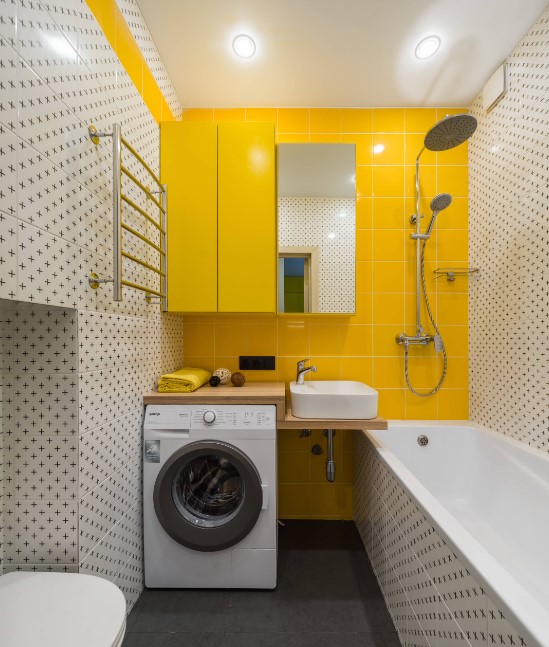 Кроме того, из ванной следует убрать все лишнее. Стиральную машину лучше переместить на кухню.