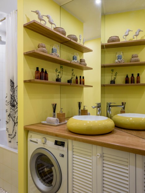 - полочки возможно закрепить над стиральной машиной или ванной;