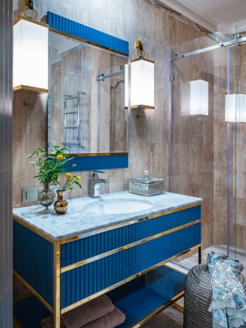 Голубой в светлом или темном своем исполнении относится к оттенкам холодным. Поэтому его необходимо разбавлять вариантами кремовых тонов. Так или иначе, цвет визуально увеличивает пространство и создает эффект чистоты.
