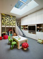 На мансарде можно разместить полноценную детскую комнату со спальным местом, зоной для игр, занятий и творчества. Главное – чтобы помещение было достаточно освещенным, если есть возможность заменить старые небольшие окна на новые стеклопакеты с большими габаритами – не стоит упускать такую возможность. От обилия солнечного света несложно избавиться – достаточно наличия штор или жалюзи на окнах, а вот недостаток естественной освещенности будет сказываться на психологическом и физическом состоянии ребенка, который проводит в своей комнате много времени.