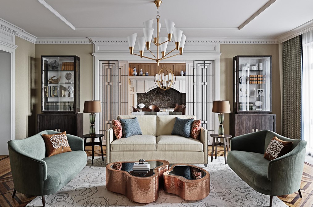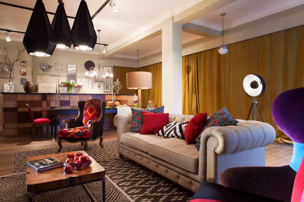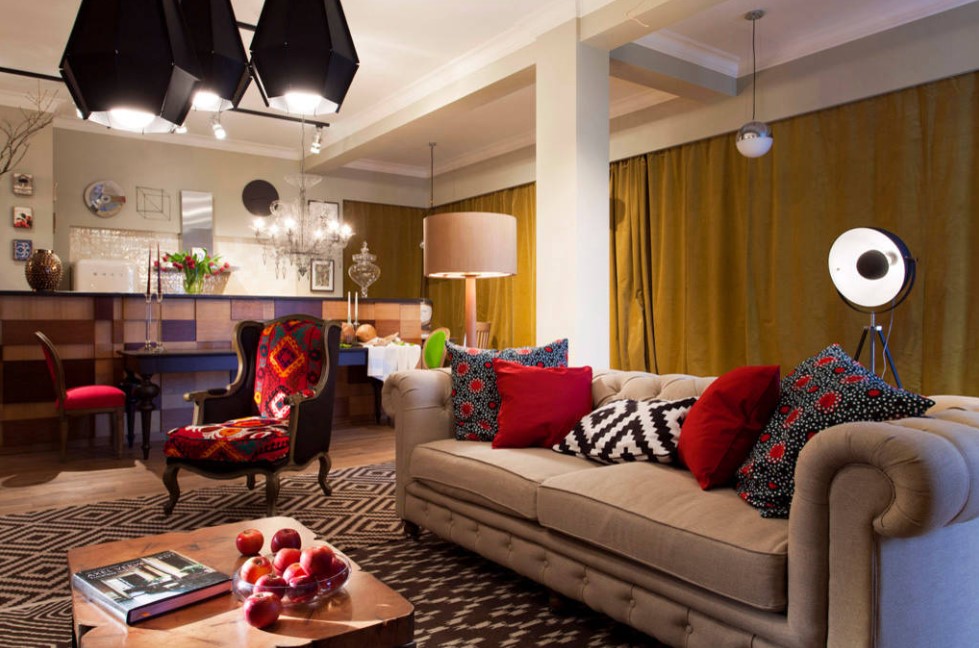 - Присутствие контрастности. Это касается не только цветовой гаммы, но и сочетания стилей. Классика может «соседствовать» с этническим стилем, а минимализм с античностью и т.д.