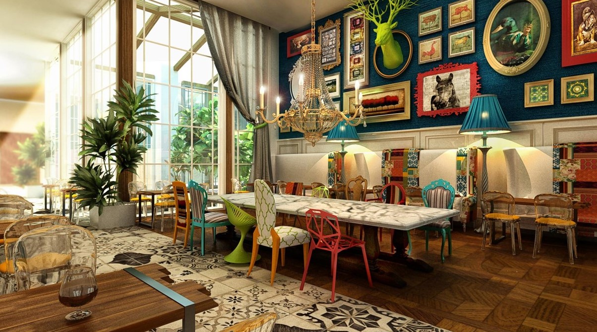 Стиль эклектик отличает полная безграничная свобода в выборе цветов и оттенков. Можно использовать для оформления, как яркие тона, так и приглушенные, мягкие, пастельные оттенки.