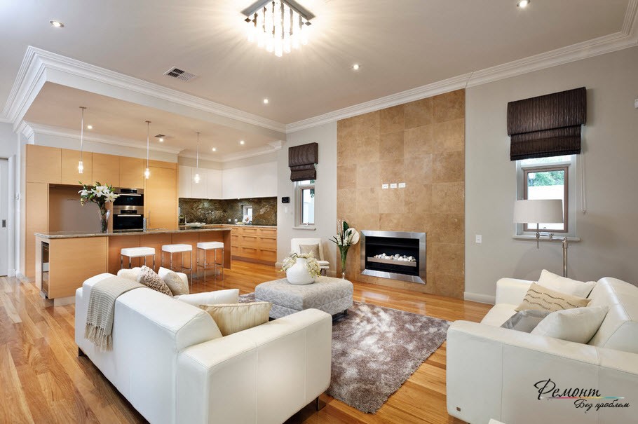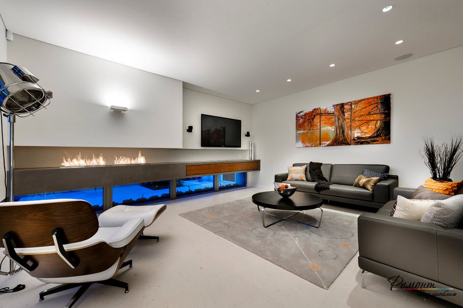 Особый уют и изысканность гостиной придает камин. Он может служить прекрасным украшением комнаты, способен создавать теплую атмосферу, успокаивает и заряжает позитивными эмоциями. Видов и вариантов расположения каминов существует огромное количество, все ограничивается лишь фантазией дизайнера.