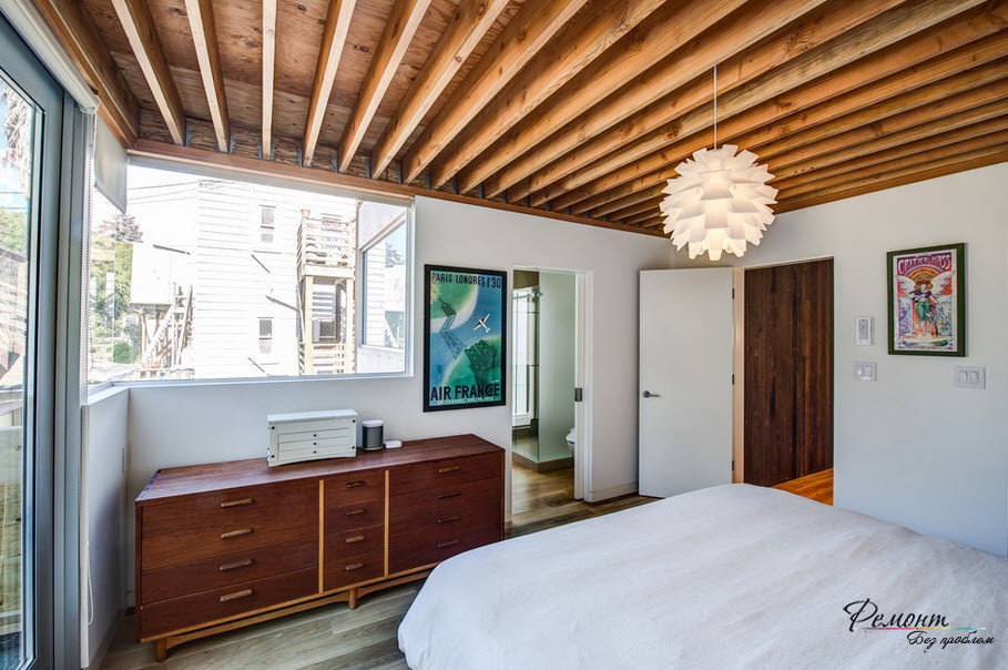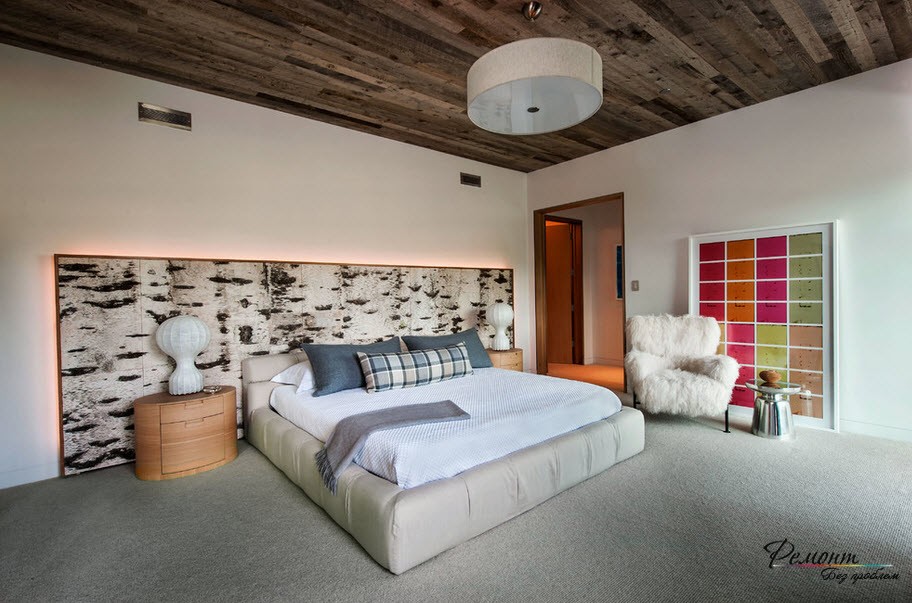 Эффектно и стильно смотрится деревянное изголовье кровати. При выборе такого варианта важно, чтобы другие предметы мебели перекликались по цветовой гамме дерева и типу обработки.