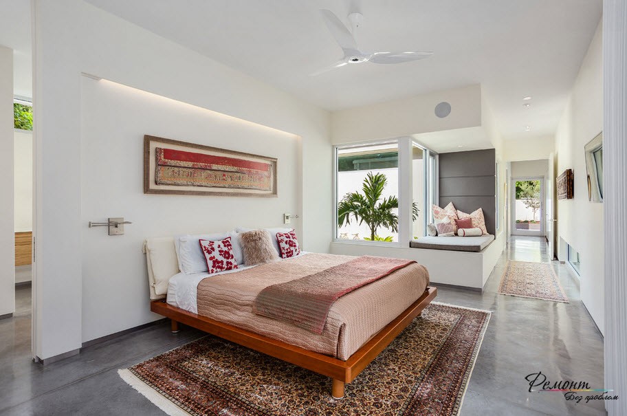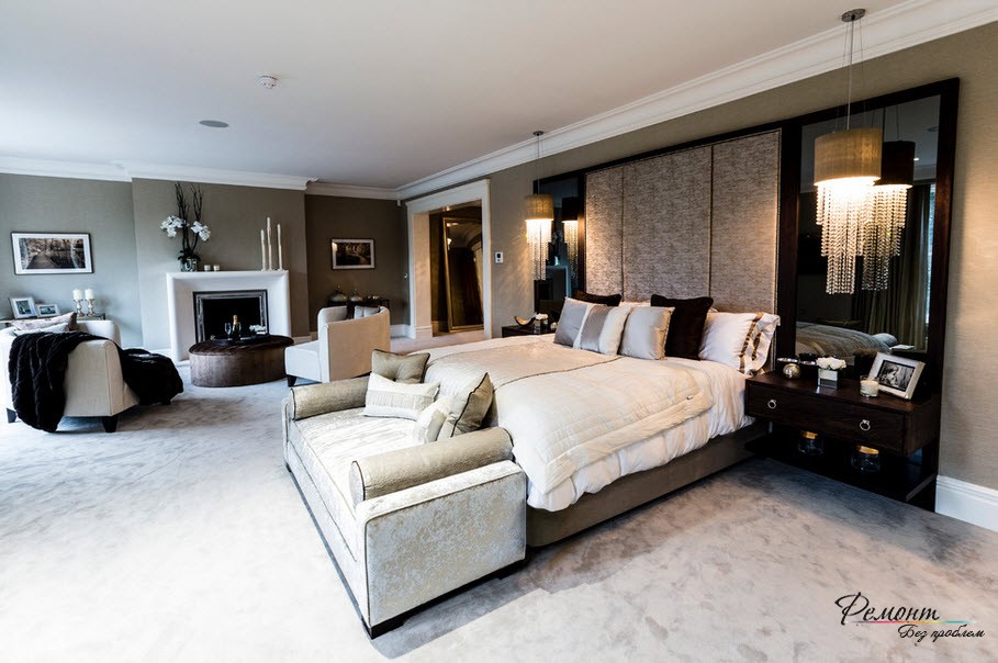 Для обеспечения комфорта и повышения функциональности, помещение можно разделить на области, каждая из которых будет иметь свое предназначение. Эксклюзивный дизайн предполагает наиболее удобную для владельца планировку. Спальную комнату можно комбинировать со следующими зонами: