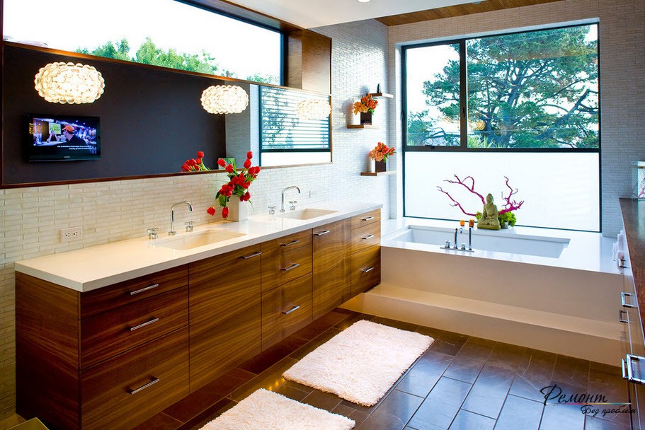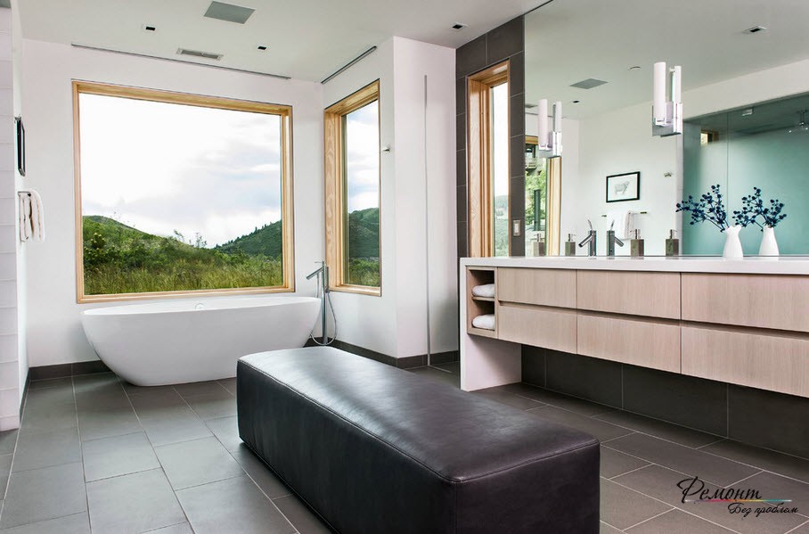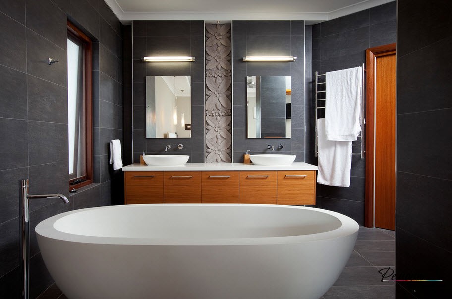 В фразе «принять ванну» сокрыт целый ритуал, обозначенный потребностью расслабления и релакса. При совпадении желания, возможностей и наличии просторного помещения себя позволительно радовать неформатным декором и дорогой отделкой.