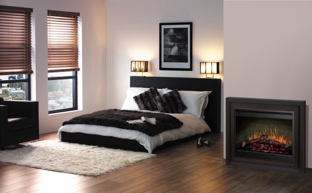 Наиболее актуальное расположение электрического камина – в одном из углов комнаты либо напротив кровати, что позволит хозяевам помещения, при желании, лицезреть языки пламени и расслабляться, ведь на то, как горит огонь, можно смотреть бесконечно.