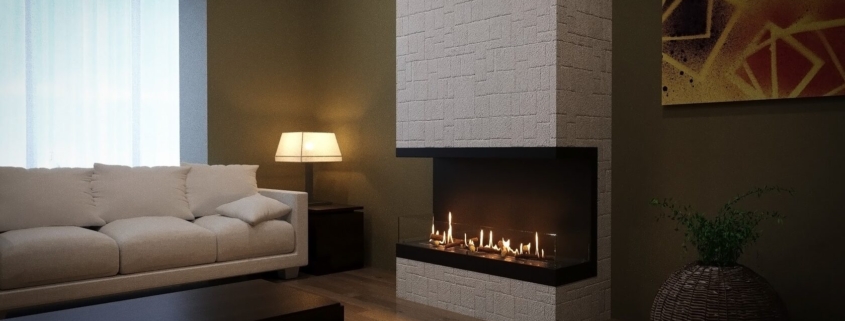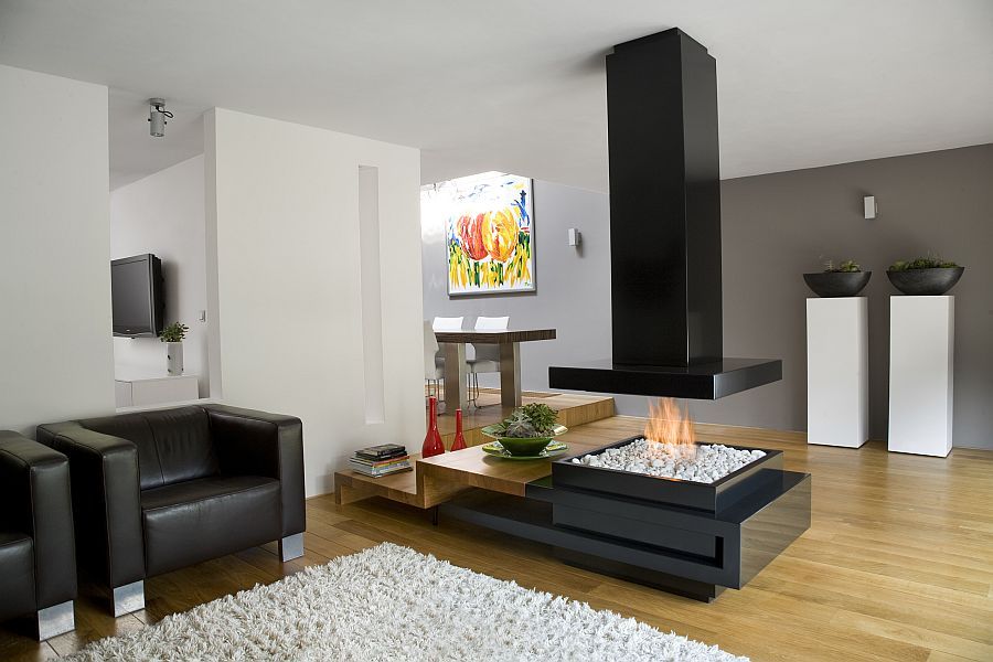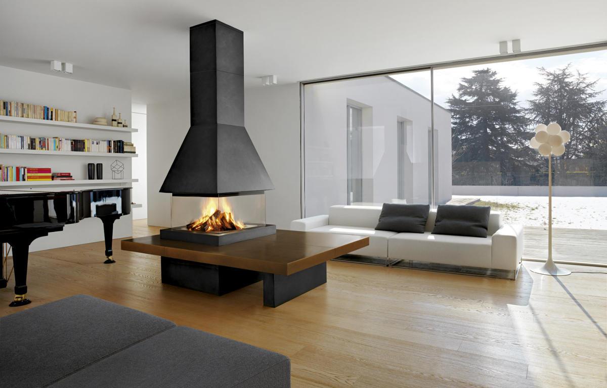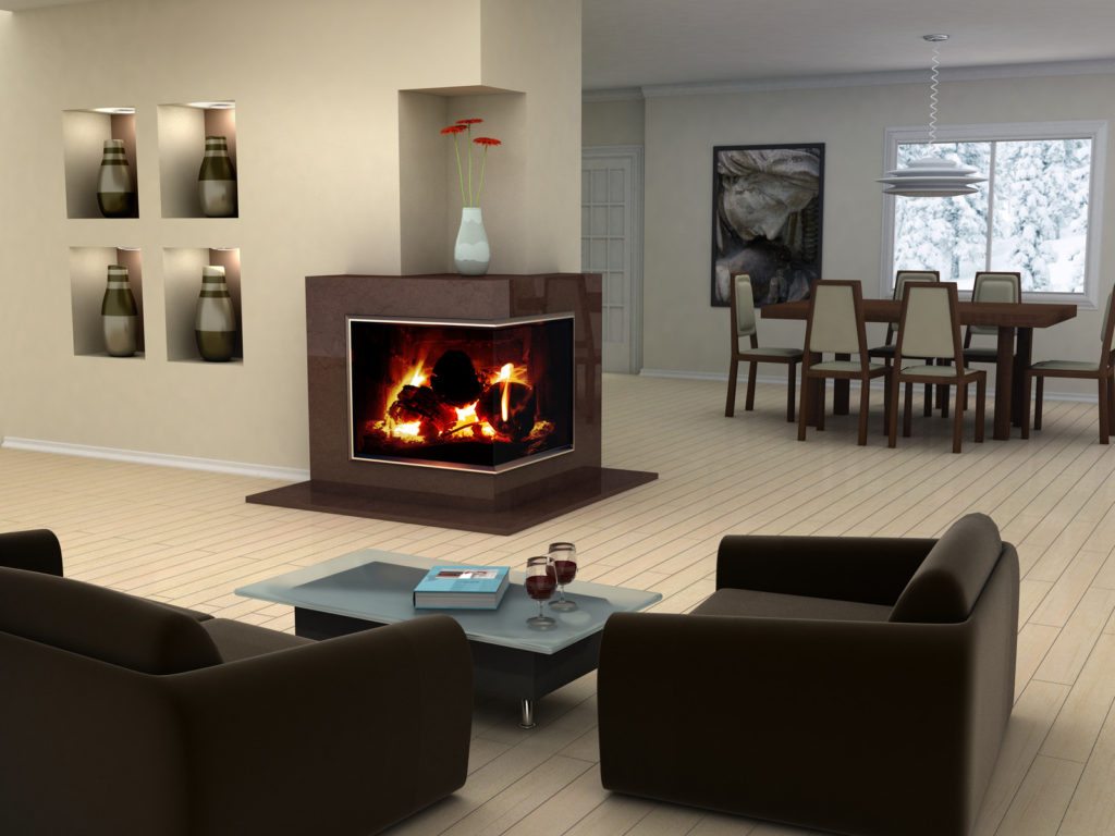 - двухсторонняя модель представляет собой камин, который используется в качестве стеновой перегородки;