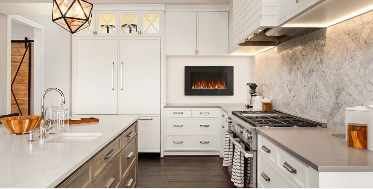 Современные примеры интерьерных решений для кухни богаты разнообразием подобных вариаций на любой вкус и финансовые возможности. Электрический камин вместо телевизора либо в дуэте с ним поможет создать необыкновенную атмосферу и превратит обычный приём пищи в особенное событие. Электрокамин на кухне – это одновременно традиционное и новаторское решение!