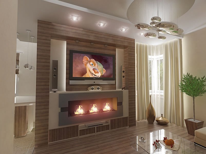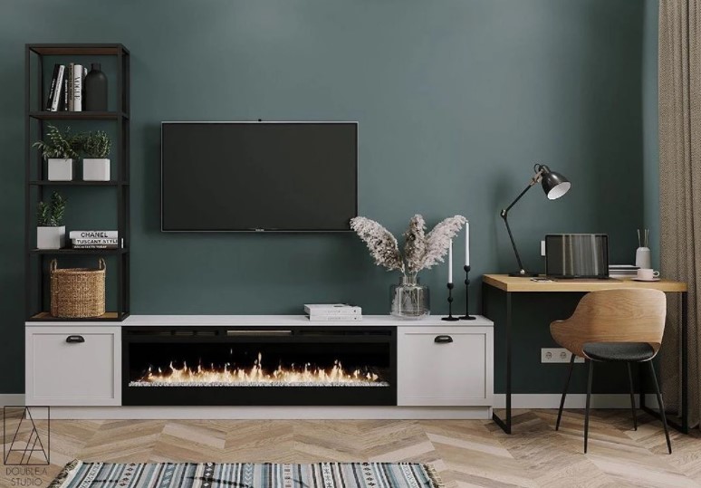 Если же вы планируете совместить и электрокамин, и телевизор в интерьере, то можно расположить первый экземпляр под вторым с рекомендованным расстоянием между ними от 20 до 60 см.