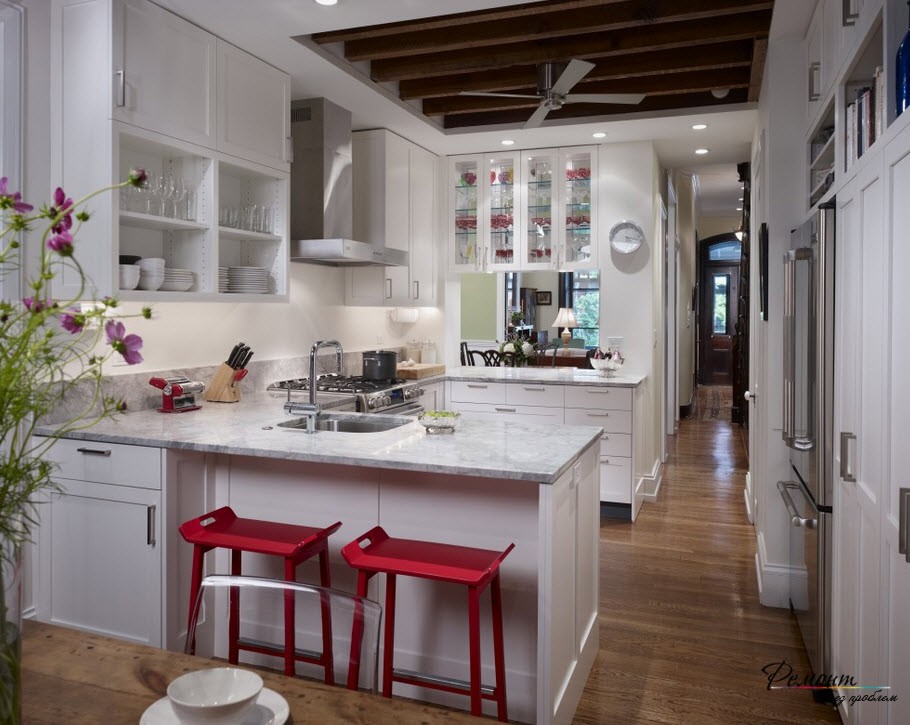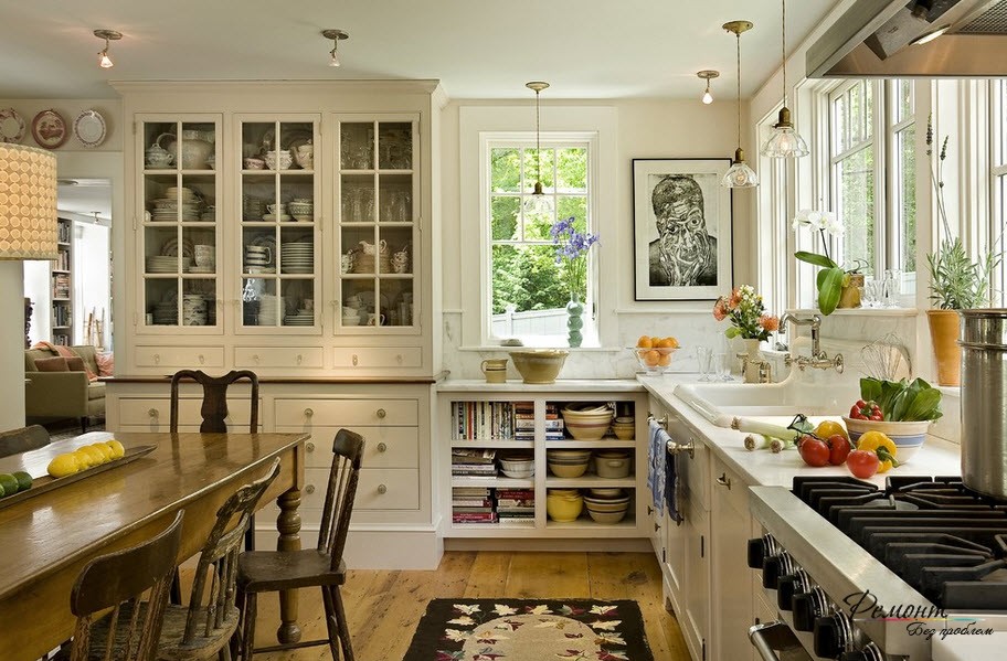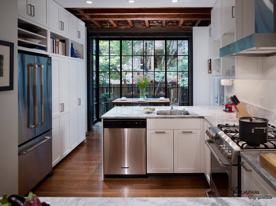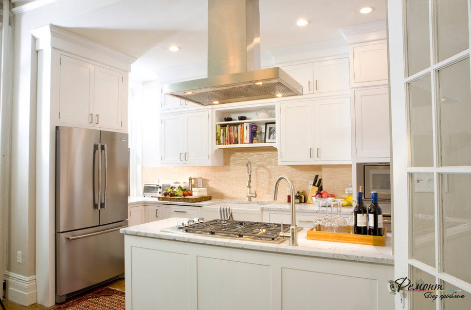 Если использовать этот спектр оборудования грамотно, то можно сделать кухню уютной, не загромождая помещение неприятными глазу деталями.