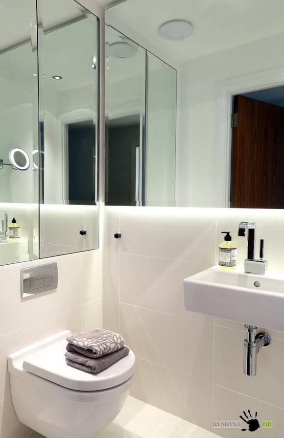 В утилитарных помещениях, таких как ванная комната, интерьер также подчинен практичности и комфорту, облаченных в привлекательную внешне оболочку. Отделка в светлых тонах, зеркальные поверхности и грамотно расположенная подсветка зрительно расширяют пространство, и создают светлую, чистую и легкую обстановку.