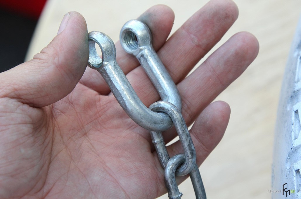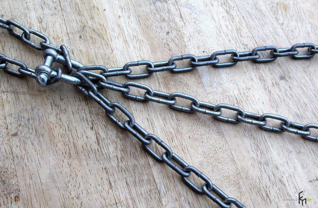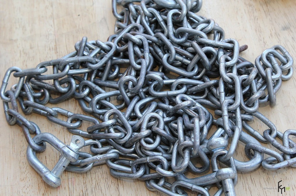 Для верхней части качелей понадобится прочная цепь с креплениями.