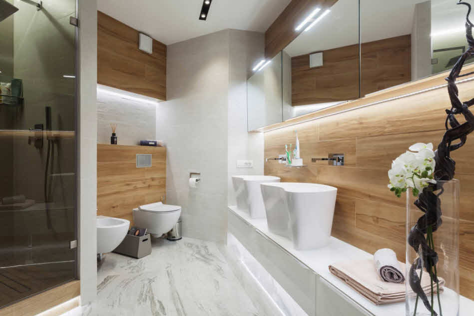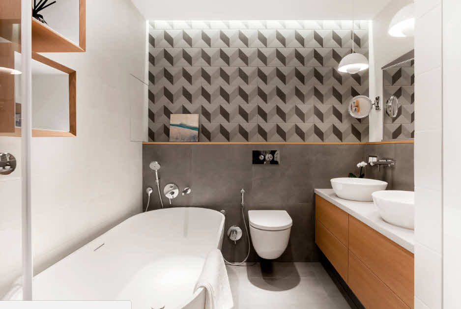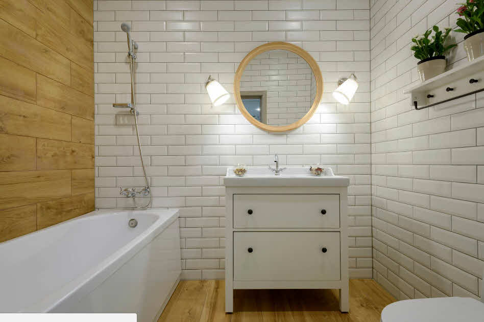 - отделка контактных зон. К примеру, зоны над раковиной или ванной.