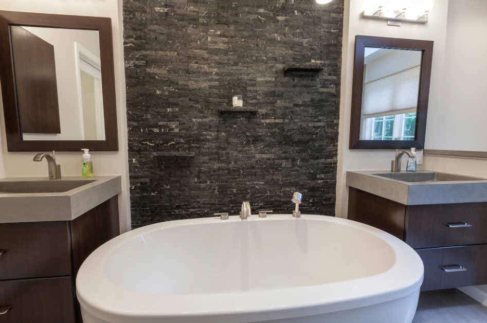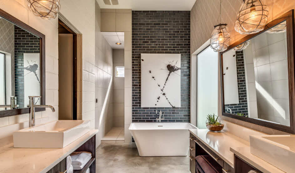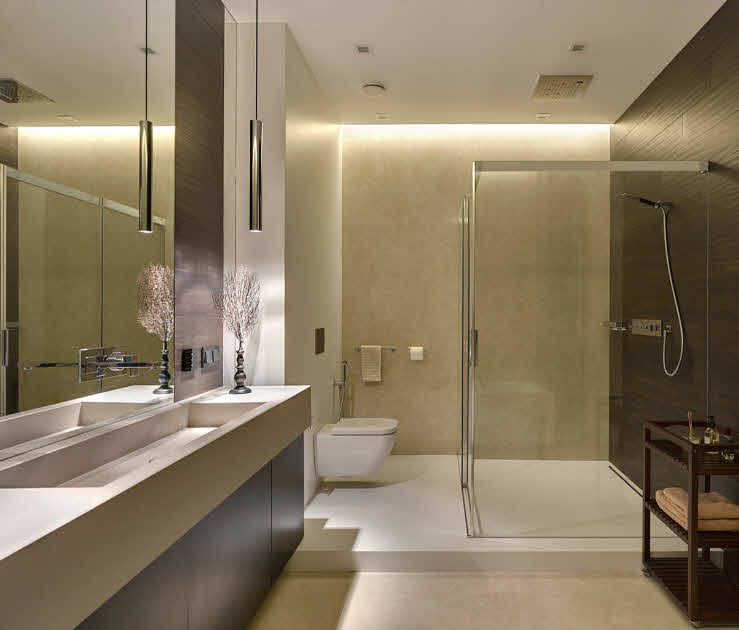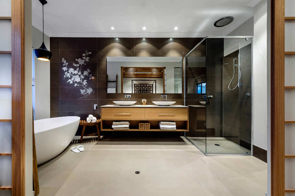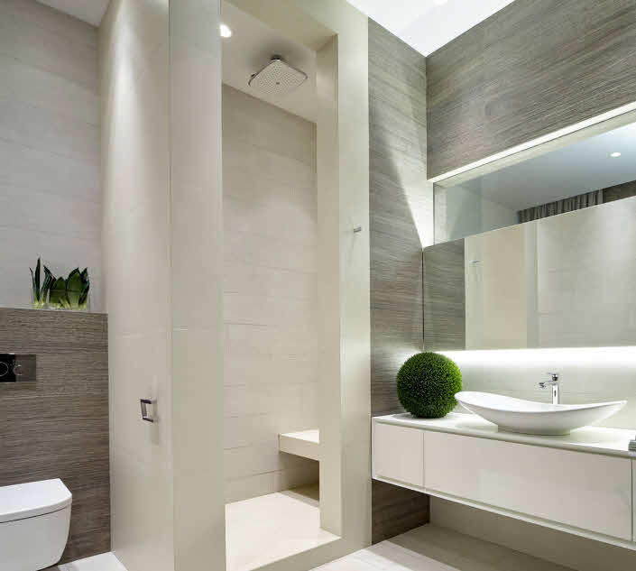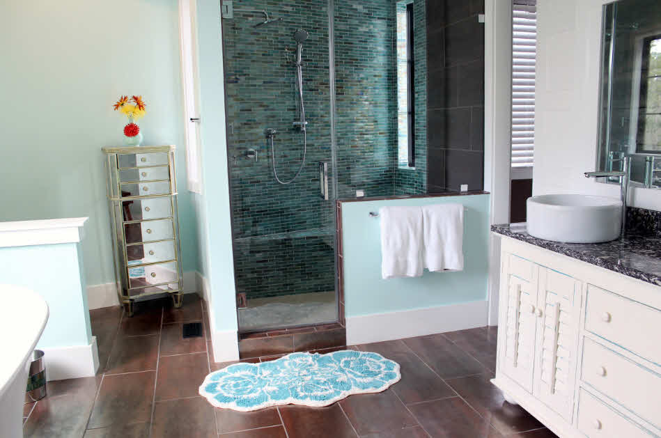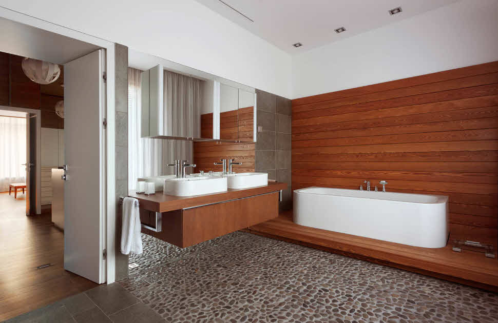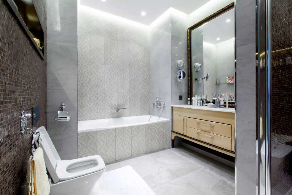 Если Вы являетесь владельцем большой ванной комнаты, то ограничения, применяемые для оформления маленьких помещений автоматически отбрасываются и Вы вольны в своих решениях и дизайнерских изысках. Здесь игра цвета, форм, материалов и акцентных элементов ограничивается только Вашей фантазией. Однако, в таком случае можно переусердствовать и комната станет слишком пестрой, а сама отделка будет «давить», в результате чего, в комнате станет некомфортно, а одним из определяющих факторов удачного дизайна ванной комнаты – удобство, уют и комфорт.