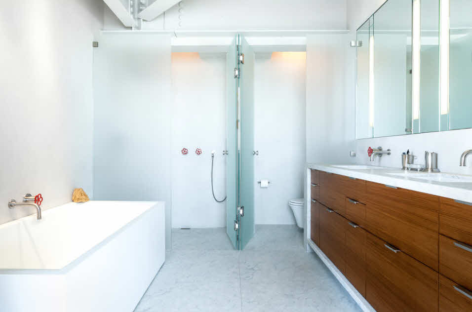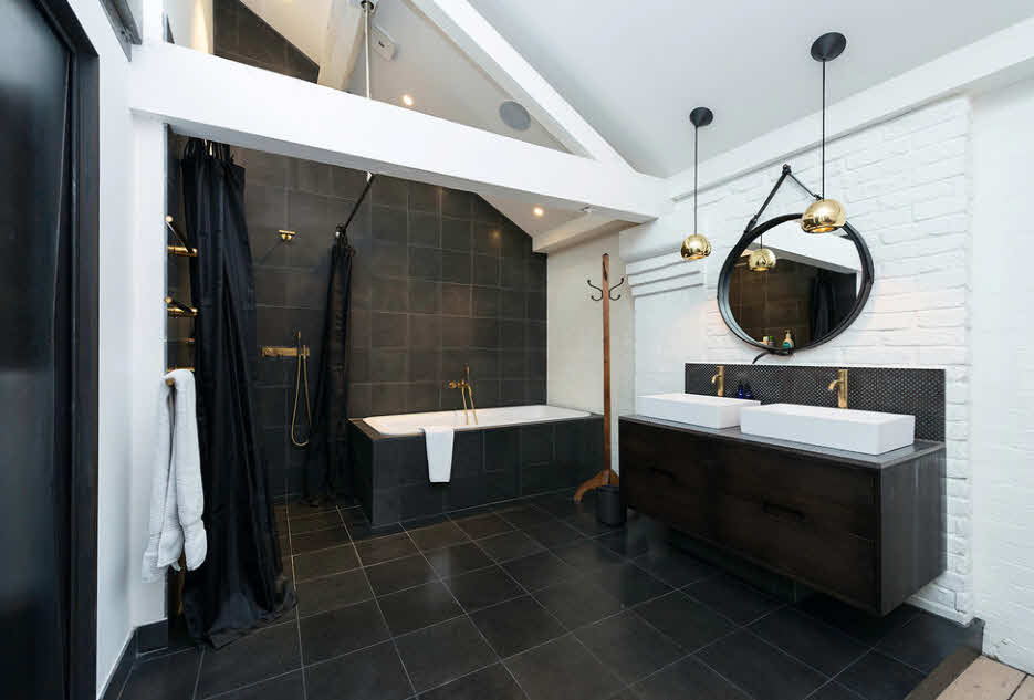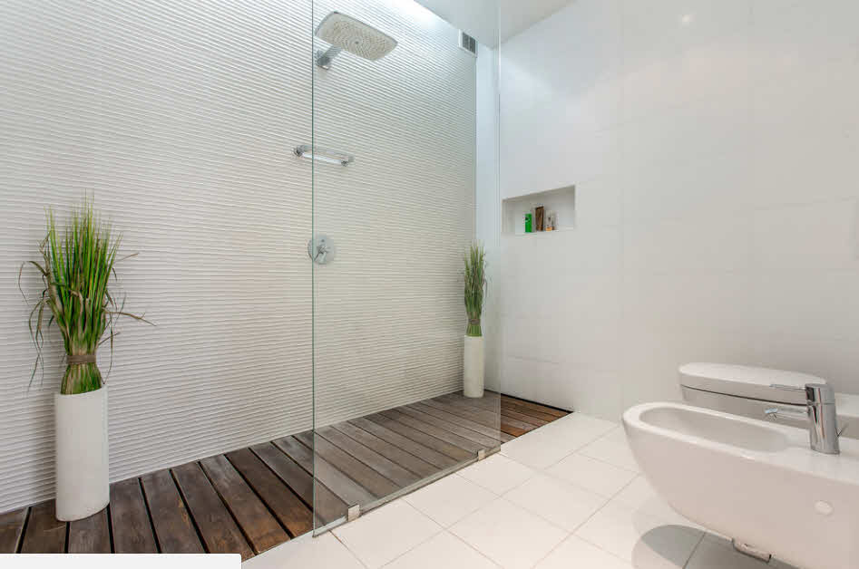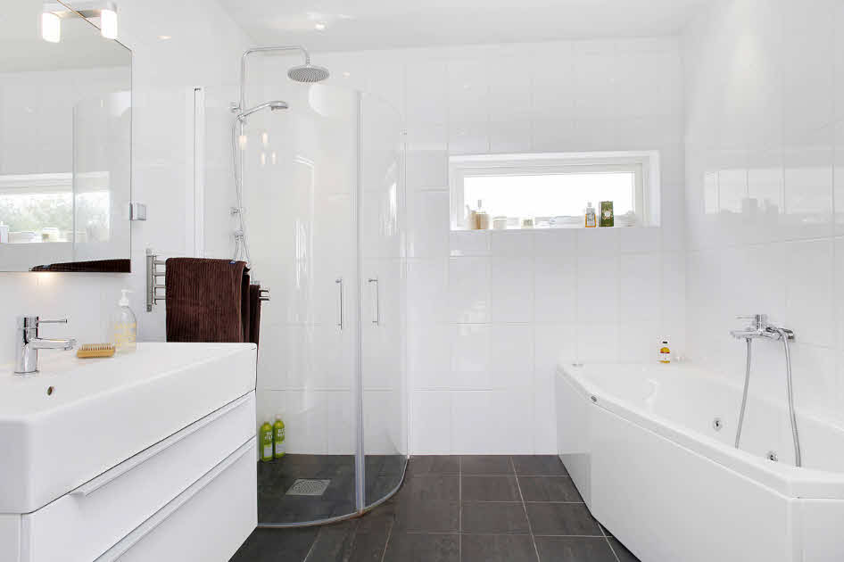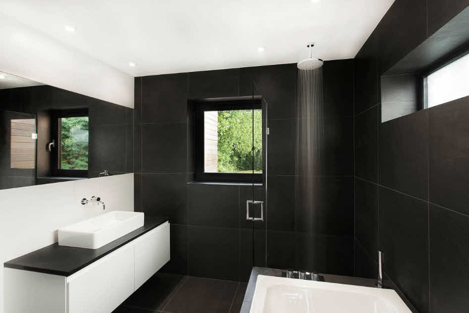 Этот выбор для ценителей стиля. Такие цвета модны всегда – это классика. При сочетании чисто белого и черного цвета с каким-либо акцентом можно произвести приятное ощущение изысканности дизайна. Однако нужно учитывать, что белый цвет может вызвать чувство холода и отсутствия уюта, именно поэтому следует уделить особое внимание акцентным стенам. Помимо этого, однотонную плитку следует довольно часто убирать (мыть, протирать) так как на ней видны даже самые незначительные грязевые, мыльные пятна или потеки.