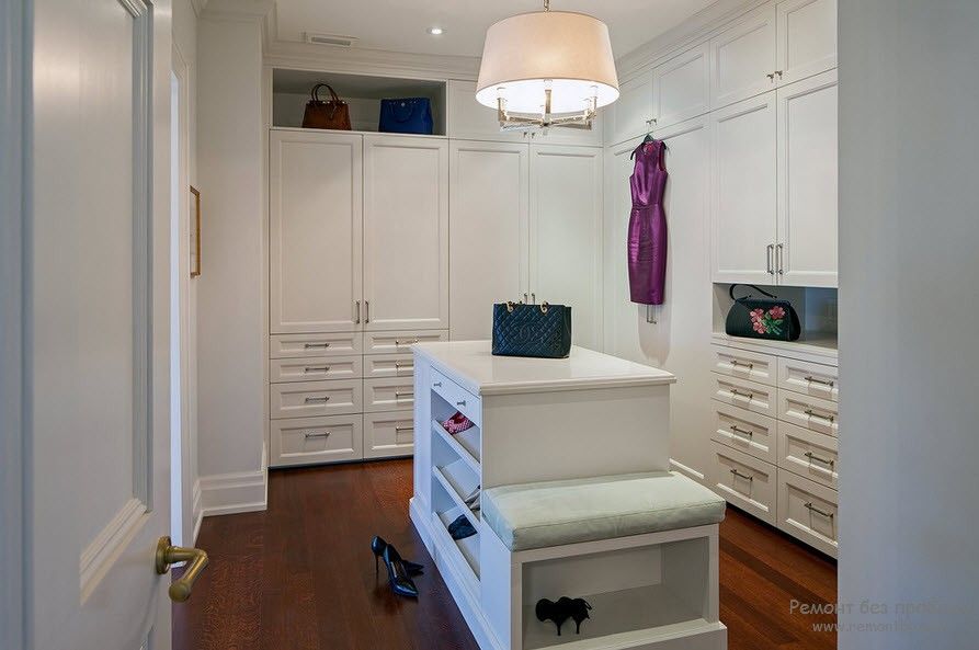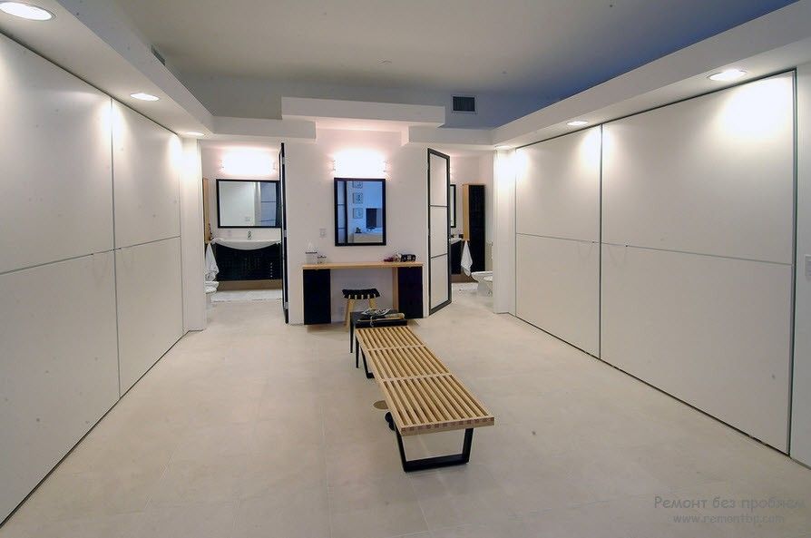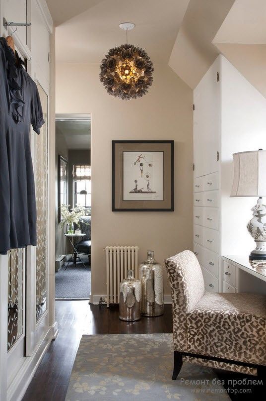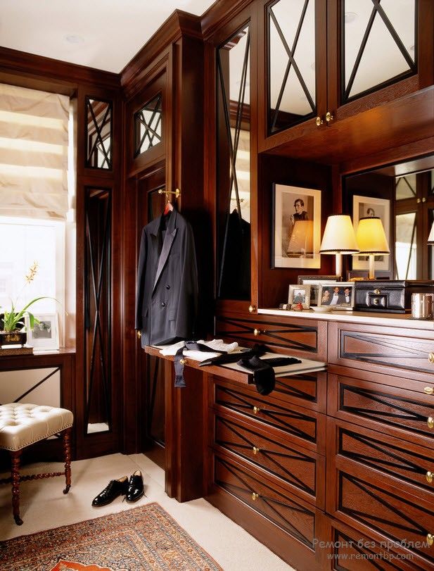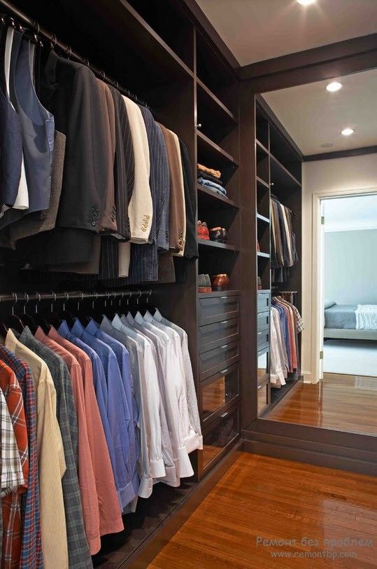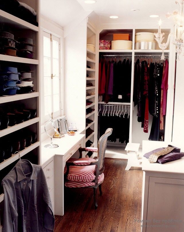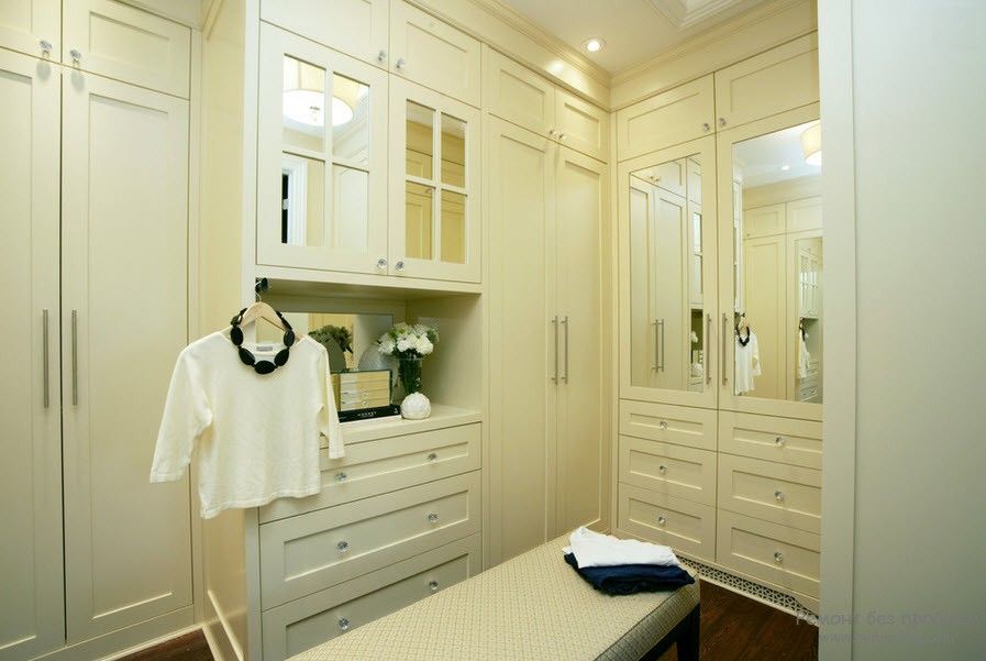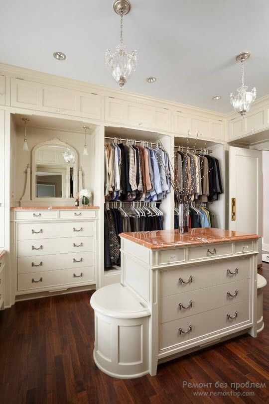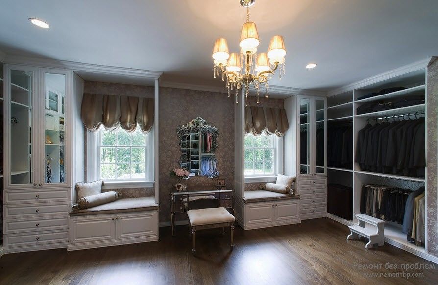 - идеально если в гардеробной будет большое зеркало и место для переодеваний, ведь именно в этом ее достоинство, в отличие от обычного шкафа;