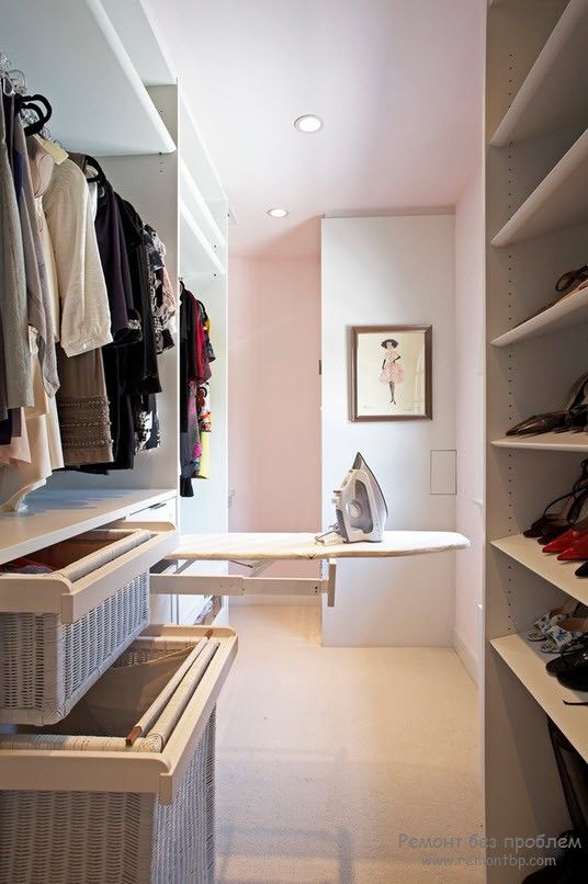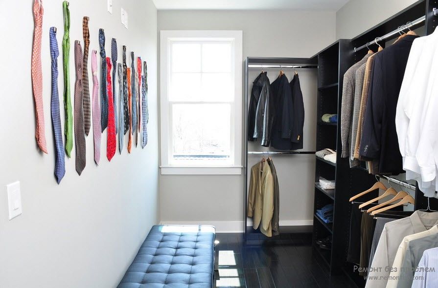 - отведенное место должно быть минимум 1 на 1,5 метра, именно в такой комнате поместятся все необходимые ящики, полки и вешалки;