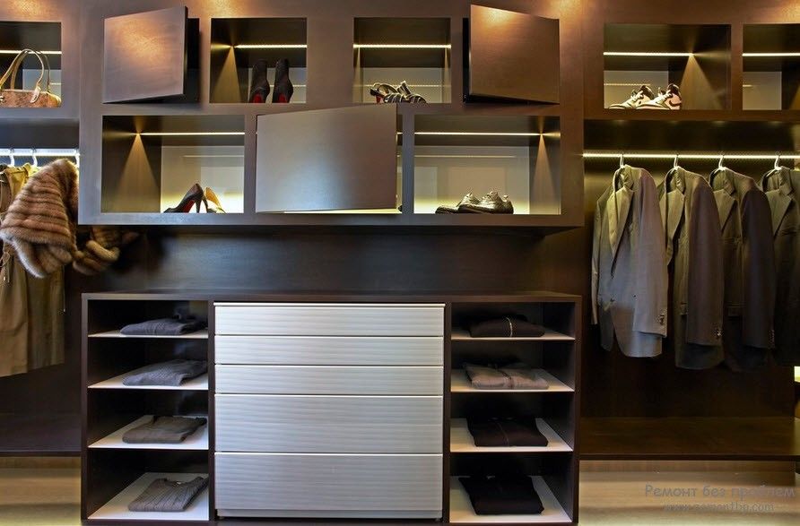 - подобрать готовые ящики и вешалки и все это грамотно распределить в отведенном месте;