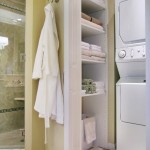 - как уже говорилось поместить ее можно в нише, а остальное пространство занять полками для различных мелочей;