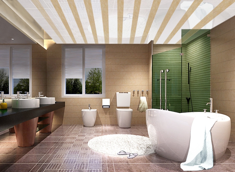Ванная отличается от остальных комнат некоторыми особенностями. Чаще всего, не имеет источников естественного света, поэтому требует более тщательного подхода при выборе системы искусственного освещения. Эта комната, преимущественно, имеет повышенный уровень влажности, который обязывает к приобретению строительных материалов, в том числе для потолка, с влагоустойчивыми характеристиками.