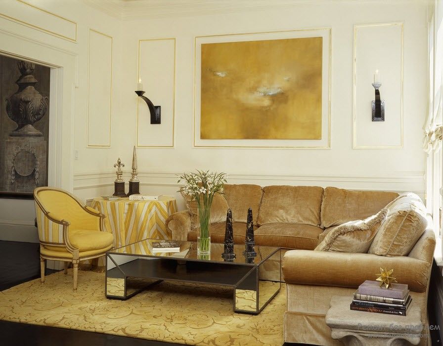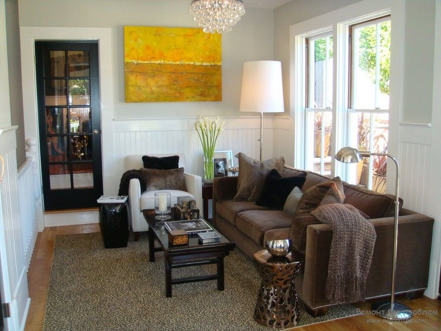 Зону отдыха лучше всего располагать в тех местах, где менее всего будет освещена комната, чтобы не напрягать световым восприятием отдыхающих людей. В такой части гостиной лучше всего поставить диван или кресла, а рядом телевизор или любые аудиоустройства и осветить легкими ненавязчивыми бра или стильными напольными лампами.