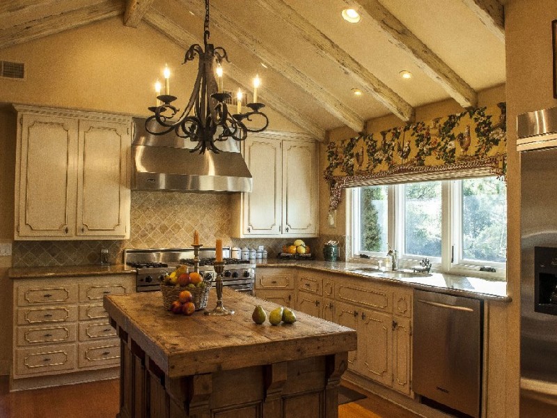 Кантри – не менее популярный стиль, напоминающий «сельский». Как и в классике, здесь также все натуральное: плетеная мебель, фасады из дерева, цветы в глиняных горшках, вся техника скрыта. Кухня выглядит очень уютно, удобно и просто по определению.
