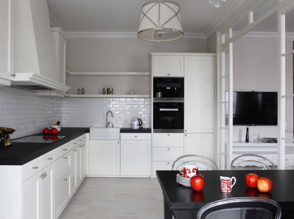 Помимо удобства и визуальной привлекательности на кухне следует придерживаться правил пожарной безопасности и свободного доступа, когда проходы между обстановкой не мешают свободному передвижению по кухне. Однако это уже тема для другой публикации!