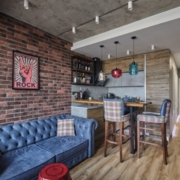 - Мебель в гостиной, совмещенной с кухней