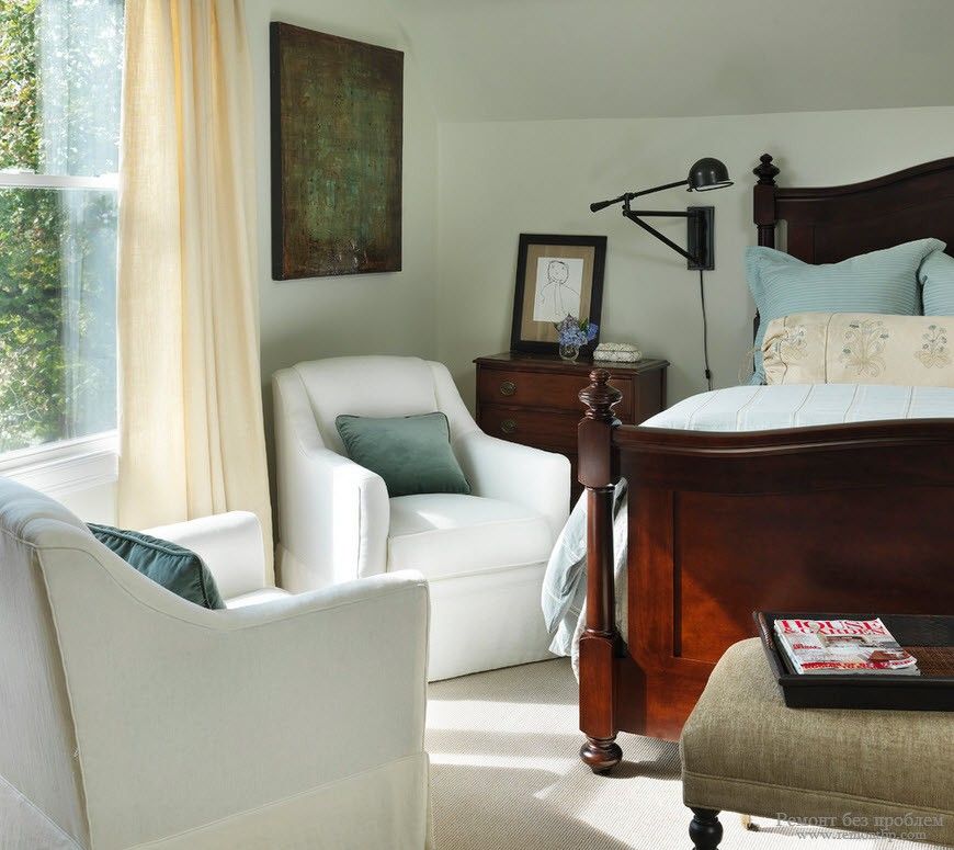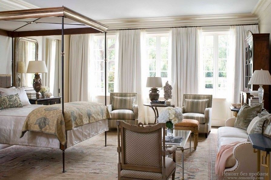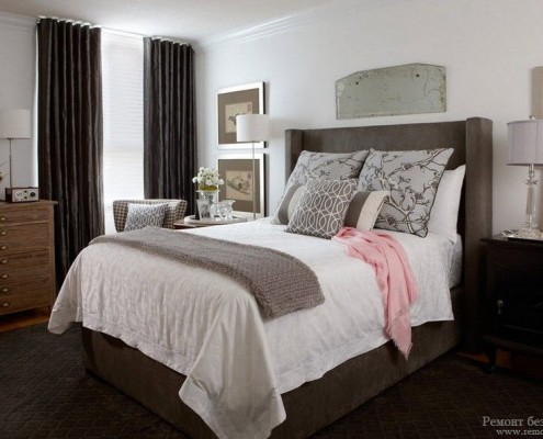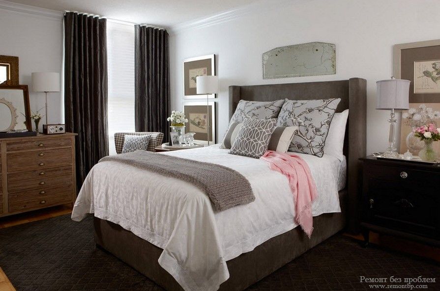 Все остальные дополнительные предметы мебели размещаются на оставшиеся после установки кровати, шкафов и прикроватных тумбочек свободные места в соответствии с удобством и функциональностью.