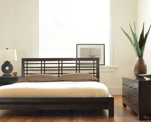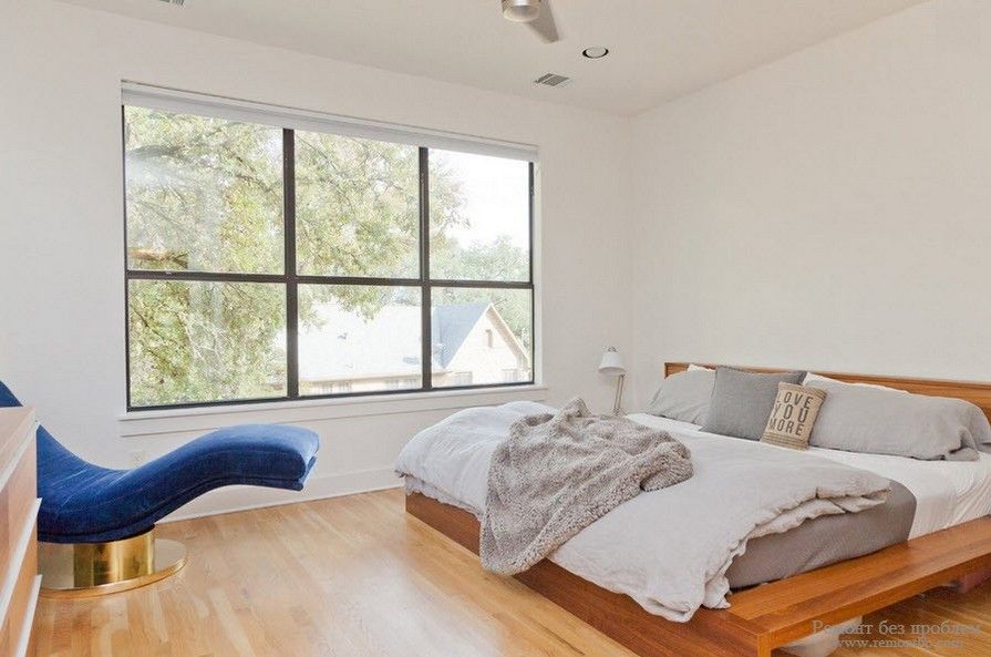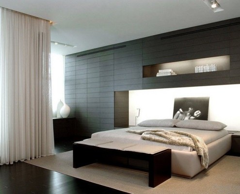 Если же говорить о стиле минимализма, то здесь в противоположность классическому стилю присутствует наименьшее количество мебели и декора. Обстановка спальни в стиле минимализма может состоять вообще из одной кровати, из спинки которой, например, выдвигаются полочки, а прикроватными предметами могут быть тумбы с открытыми полками.