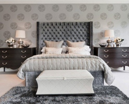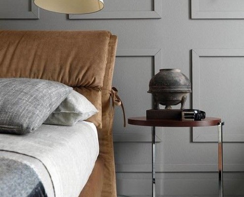 - навесное изголовье – представляет самый оригинальный и изящный вид, подобный живописному полотну, самый простейший вариант – это рама, набивающаяся наполнителем и покрытая сверху обивкой, обычно высота спинок достигает 110 см от пола, в связи с чем им трудно под собственным весом держаться вертикально, поэтому они крепятся к стене, чтобы конструкция была более надежной, а кровать просто придвигается рядом, подобные модели обычно идут в комплекте с кроватью, хотя предлагаются и универсальные сменные, что касается других вариантов – они обычно напоминают картины и также крепятся с помощью петель с оборотной стороны, вешаются они на любой высоте, с ними сочетается как низкие, так и высокие матрасы, единственный минус – расположение кровати возможно только головой к стене